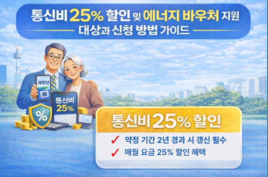 고물가와 고금리가 지속되는 2026년 현재, 5060 세대의 가계 관리에서 고정 지출을 최적화하는 것은 자산 방어의 핵심 전략입니다. 특히 매달 고정적으로 지출되는 통신비와 계절별로 변동성이 큰 냉·난방비는 정부의 지원 제도를 정확히 활용하기만 해도 연간 수십만 원의 예산을 절감할 수 있는 항목입니다. 하지만 많은 가입자가 약정 만료 사실을 인지하지 못하거나 신청 절차의 복잡함으로 인해 당연한 권리를 포기하곤 합니다. 본 가이드에서는 법적으로 보장된 '통신비 25% 선택약정 할인'의 구조와 에너지 취약계층을 위한 '에너지 바우처' 제도의 행정 절차를 정밀하게 분석하여 보고합니다.